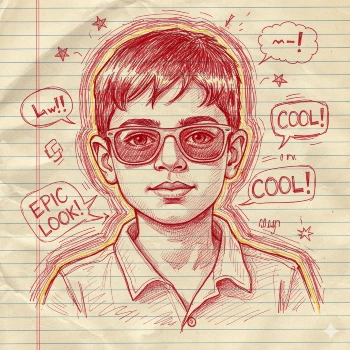 Generate a hand-drawn portrait illustration in red and yellow pen on notebook paper, inspired by doodle art and comic annotations. Keep full likeness of the subject, expressive lines, spontaneous gestures, bold outline glow, handwritten notes around, realistic pen stroke texture, 4K resolution.